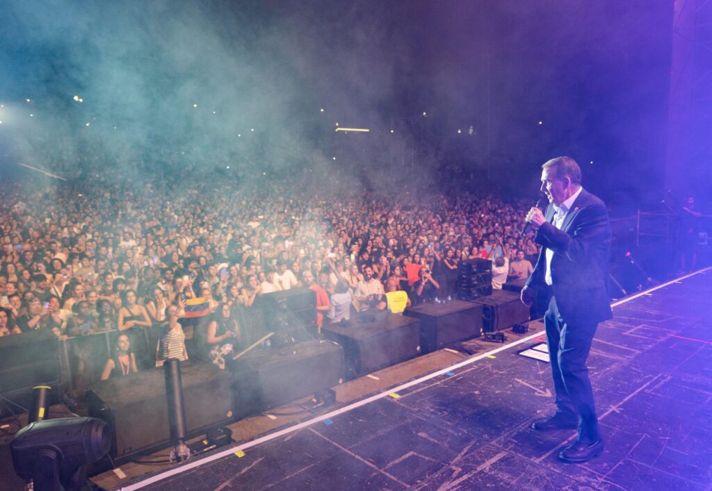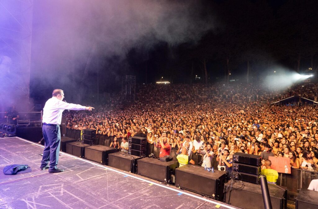 Con el alcalde, Abel Caballero, como telonero, haciendo estallar al público con frases como : «Dará el mejor concierto de su vida en el mejor auditorio al aire libre del mundo».
