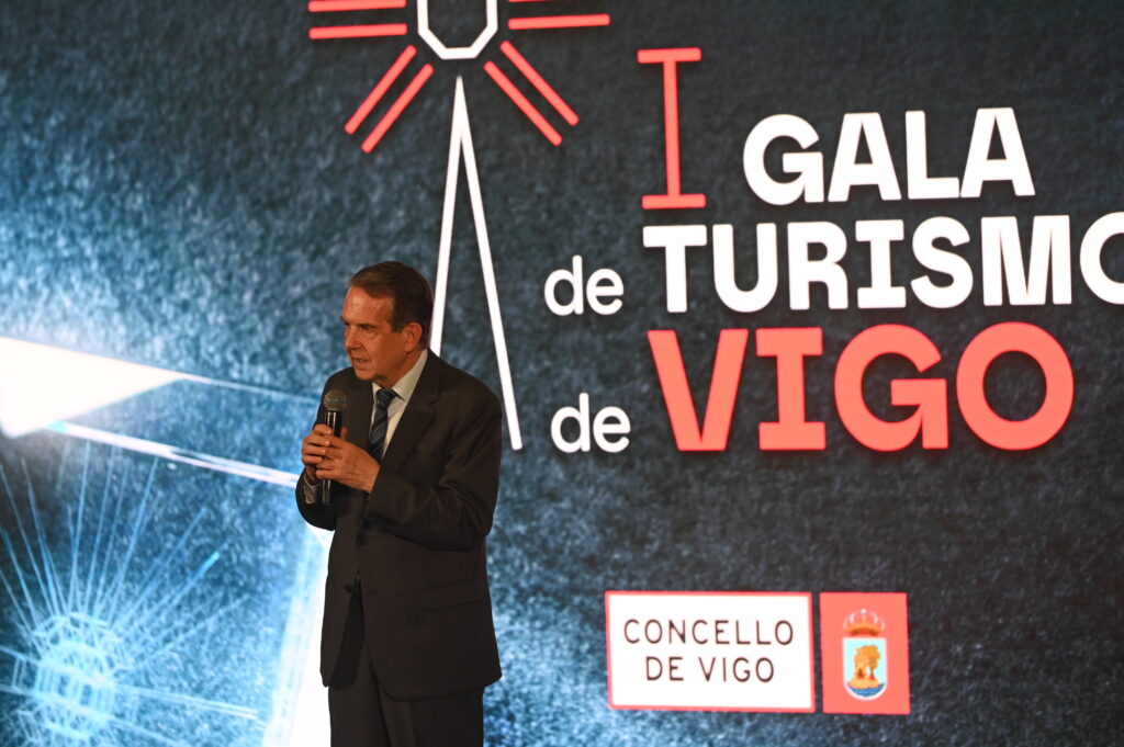Tras una tarde-noche de emociones y reconocimientos, llegó el momento del discurso del alcalde de Vigo, Abel Caballero. «Cuando entran en Vigo son vigueses y viguesas como nosotros y nosotras», señaló haciendo referencia a la calidad humana de la población como factor turístico. El edil también resaltó la importancia de la Navidad «que hemos hecho sólos desde el Concello», así como las innumerables fiestas y actividades que se llevan a cabo a lo largo del año, Vigo «plató de rodaje», grandes congresos empresariales, tecnológicos, sanitarios y sociales… lo que hace de Vigo un modelo consolidado y atractivo los 365 días del año, «tenemos un turismo cuantitativamente muy importante y de máxima calidad, somos una ciudad que atrae visitantes todo el año». Abel Caballero reivindicó más rutas aéreas, mejores infraestructuras (AVE, A-52, por ejemplo) y una mayor implicación por parte de la Diputación de Pontevedra y de la Xunta de Galicia.