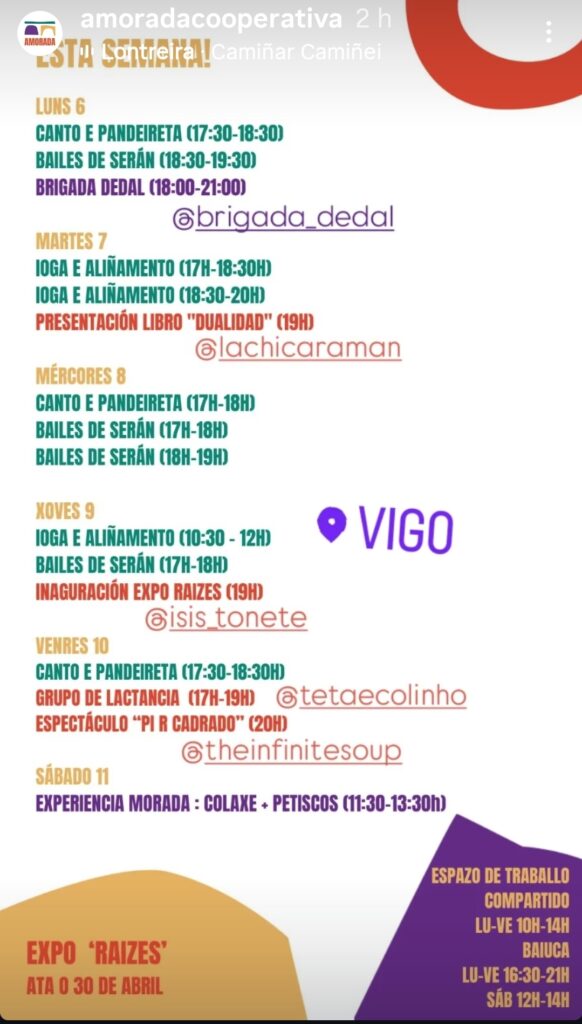 XORNADAS EN DISTINTAS LOCALIZACIÓNS DE VIGO DO 14 AO 29 DE ABRIL :